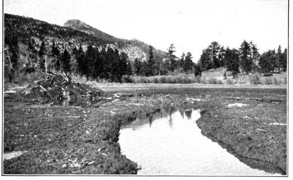 Running water dissolves and erodes away the earthy materials with which it comes in contact. The presence of a beaver pond and dam across a stream’s highway prevents the wearing and the carrying away of material. They not only prevent[Pg 218] erosion or wearing away, but they take soil and sediment from the water which comes to them and thus cause an upbuilding. Hence the presence of beaver ponds along streams causes an accumulation of sediment and soil. In time these fill rocky channels and cañons, widen and lengthen valleys, and thus extend the productive area of the earth.
