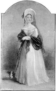 The attendant yielded, and then, to quote the simple but vivid description by Miss Wynn, “in a few minutes she (the Queen) came into the room in a loose white nightgown and shawl, her4 nightcap thrown off, and her hair falling on her shoulders, her feet in slippers, tears in her eyes, but perfectly collected and dignified.”