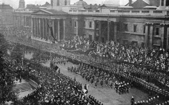 The Central Idea of the Celebrations—The Imperial Character of the Pageant—The Colonial Premiers Invited—The Decorations—Influx of Visitors—Grand Stands—Precautions against Accidents—Thanksgiving Services on Accession Day—The Queen’s Arrival in London—Night in the Streets.