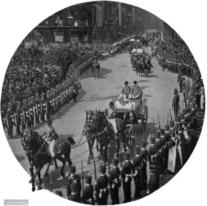 The Weather—A brilliant day for a brilliant pageant—The Queen’s Message to her people—The Colonial Procession—The Royal Procession—Loyal enthusiasm—The Queen’s reception at the City boundary—The Service at the steps of St. Paul’s—The halt at the Mansion House—In the Borough—Return to the Palace—Presents to the Queen—Congratulations from abroad—The Royal Dinner.