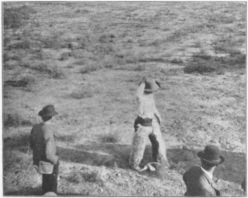 Now the crowd had its blood up. Two native champions had proved their grit, what could the Arizonian do against such as these? “He’s too big and awkward,” said one onlooker. “He’s not the cut for a King buster,” grunted another. “The h—l he ain’t. Ain’t he the man who won that Cheyenne race after his horse fell on him?” exclaimed one who knew, and the scoffers became silent.