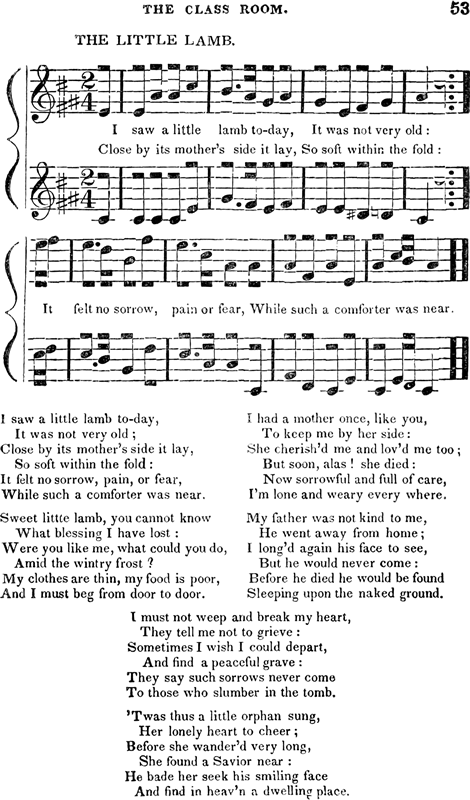 OF "MUSICA SACRA"—"SPIRITUAL SONGS"—"INFANT