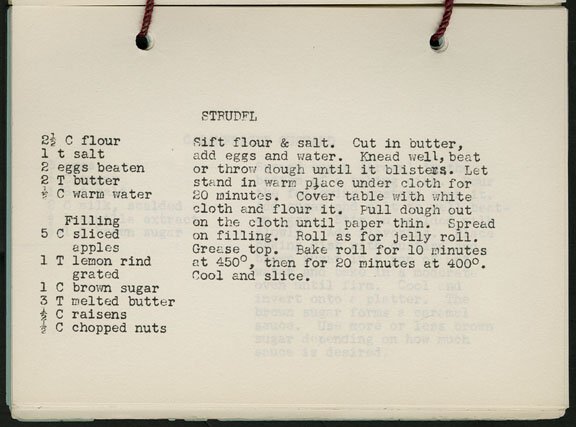 Sift flour & salt. Cut in butter, add eggs and water. Knead well, beat or throw dough until it blisters. Let stand in warm place under cloth for 20 minutes. Cover table with white cloth and flour it. Pull dough out on the cloth until paper thin. Spread on filling. Roll as for jelly roll. Grease top. Bake roll for 10 minutes at 450°, then for 20 minutes at 400°. Cool and slice.