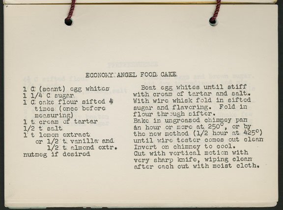 Bake in chimney pan at 325°-350° for 45 minutes or longer until tester comes out clean. Invert on chimney to cool. Cut as Angel food.