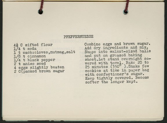 Combine eggs and brown sugar. Add dry ingredients and mix. Shape into walnut-sized balls and put on greased baking sheet. Let stand overnight covered with towel. Bake 20 to 25 minutes (350°). Shake few cookies at time in paper bag with confectioner's sugar. Keep tightly covered. Become softer the longer kept.