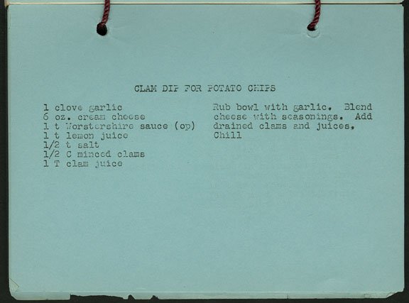 Rub bowl with garlic. Blend cheese with seasonings. Add drained clams and juices. Chill.