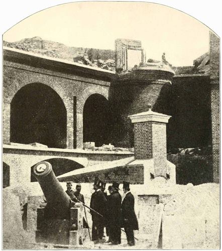 Wade Hampton (the tallest figure) and other leading South Carolinians inspecting the effects of the cannonading that had forced Major Anderson to evacuate, and had precipitated the mightiest conflict of modern times—two days before.