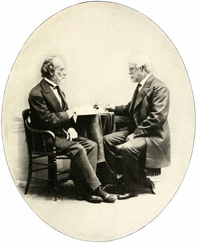 I now come to what I have always regarded—shall ever regard—as the most creditable episode in all American history—an episode without a blemish, imposing, dignified, simple, heroic. I refer to Appomattox. Two men met that day, representative of American civilization, the whole world looking on. The two were Grant and Lee—types each. Both rose, and rose unconsciously, to the full height of the occasion—and than that occasion there has been none greater. About it, and them, there was no theatrical display, no self-consciousness, no effort at effect. A great crisis was to be met; and they met that crisis as great countrymen should. Consider the possibilities; think for a moment of what that day might have been; you will then see cause to thank God for much.—General Charles Francis Adams, U. S. V., in Phi Beta Kappa Address delivered at the University of Chicago, June 17, 1902.