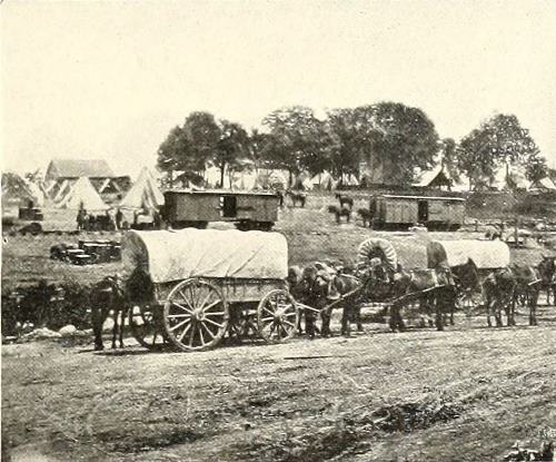 At this railroad point, three miles from the Court House, a Confederate provision train arrived on the morning of April 8th. The supplies were being loaded into wagons and ambulances by a detail of about four thousand men, many of them unarmed, when suddenly a body of Federal cavalry charged upon them, having reached the spot by a by-road leading from the Red House. After a few shots the Confederates fled in confusion. The cavalry drove them on in the direction of Appomattox Court House, capturing many prisoners, twenty-five pieces of artillery, a hospital train, and a large pack of wagons. This was Lee’s last effort to obtain food for his army.