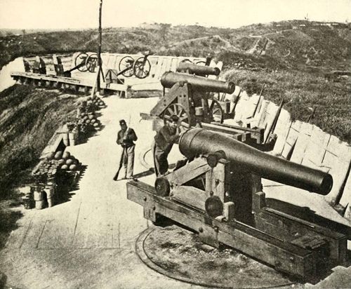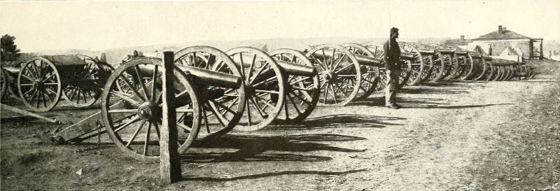 Never again to be used by brother against brother, these Confederate guns captured in the defenses about Richmond are parked near the wharves on the James River ready for shipment to the national arsenal at Washington, once more the capital of a united country. The reflection of these instruments of destruction on the peaceful surface of the canal is not more clear than was the purpose of the South to accept the issues of the war and to restore as far as in them lay the bases for an enduring prosperity. The same devotion which manned these guns so bravely and prolonged the contest as long as it was possible for human powers to endure, was now directed to the new problems which the cessation of hostilities had provided. The restored Union came with the years to possess for the South a significance to be measured only by the thankfulness that the outcome had been what it was and by the pride in the common traditions and common blood of the whole American people. These captured guns are a memory therefore, not of regret, but of recognition, gratitude, that the highest earthly tribunal settled all strife in 1865.