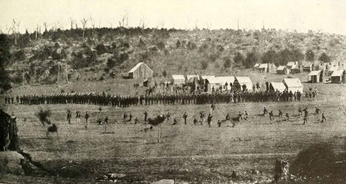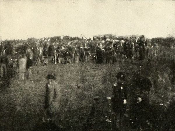 It was nearing ten o’clock. The rays of the summer sun were beating in sweltering heat upon the waiting troops. Those who could find shelter beneath the trees moved from their places into the shade. Heavy banks of storm clouds were gathering on the horizon, giving promise of relief from oppressive warmth. A silence settled over the ranks of the Confederates as they watched the edge of the woodland for the first appearance of the approaching troops.