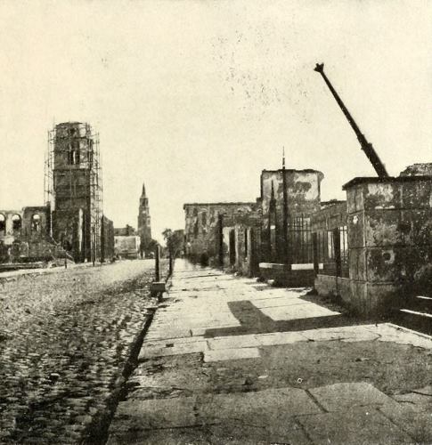 The sad significance of these photographs is all too apparent. Not only the bank buildings were in ruins, but the financial system of the entire South. All available capital had been consumed by the demands of the war, and a system of paper currency had destroyed credit completely. Worse still was the demoralization of all industry. Through large areas of the South all mills and factories were reduced to ashes, and everywhere the industrial system was turned topsy-turvy. Truly the problem that confronted the South was stupendous.