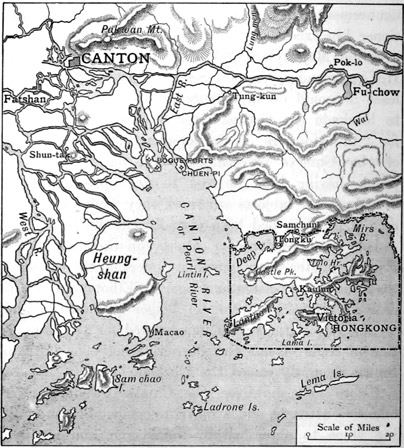 [10] Commodore Senhouse, who succeeded temporarily to the command, was so mortified by the course of diplomacy that his death at Hongkong in the month of June 1841 was believed to have been hastened thereby. His dying request was that his body should be taken to Macao, for burial, as he feared that further conciliatory measures might result in Hongkong being given back to the Chinese.