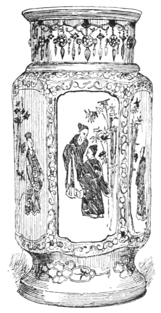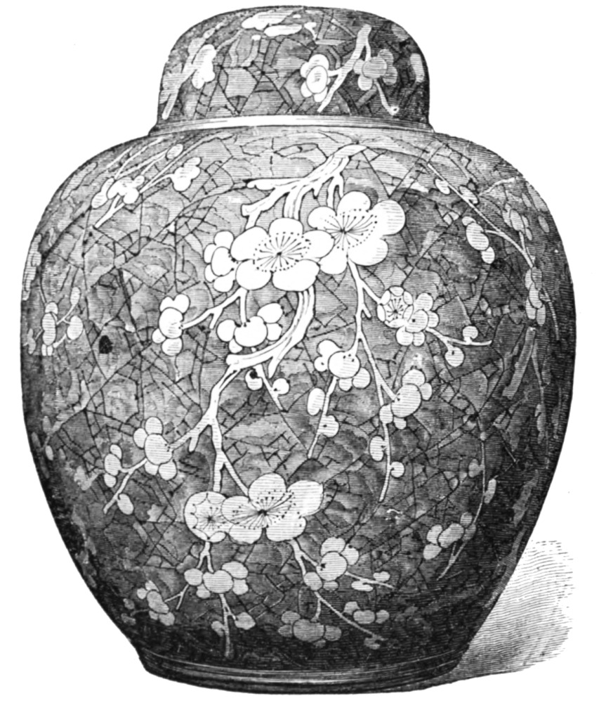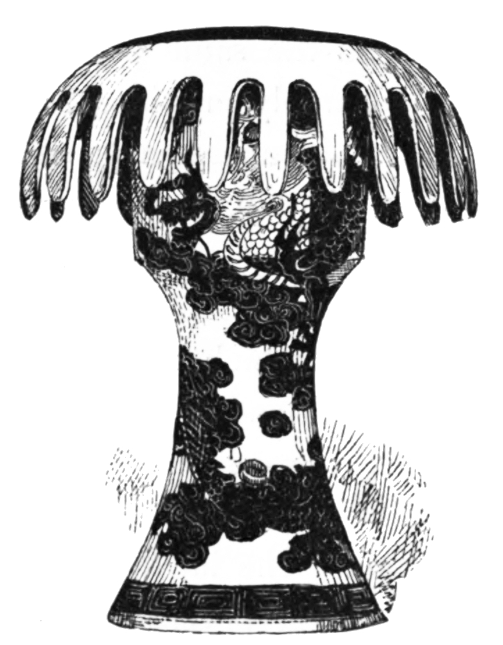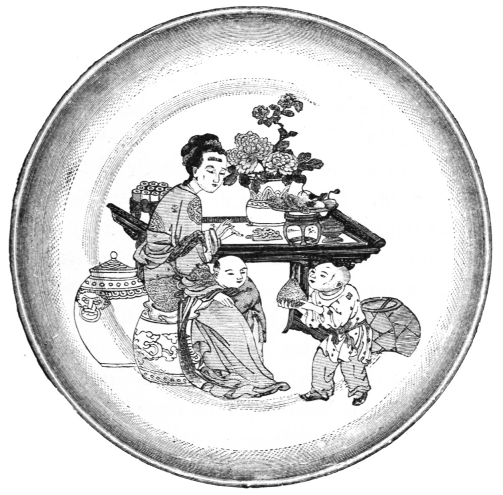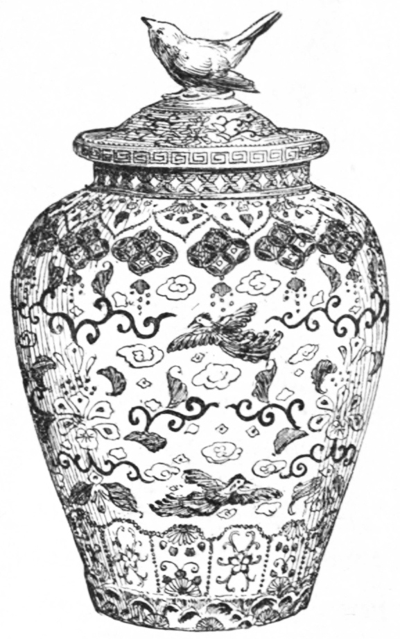 Art Different from that of Europe or America.—How it must be Viewed.—Religion.—Legend.—Hoang-ti the Inventor of Pottery.—The Leading Points of Religious System.—Personified Principles.—Lao-tseu, Confucius, and Buddha.—Kuan-in.—Pousa or Pou-tai.—Dragons.—Dog of Fo.—Ky-lin.—Sacred Horse.—Fong-hoang.—Symbols.—Meaning of Colors and Shapes.—Pottery: When First Made.—Céladon.—Crackle.—How Made.—Porcelain Crackle.—Decorations on Crackle.—Household Vessels.—Stone-ware.—Licouli.—Tower of Nankin.—Pipe-clay.—Boccaro.—Colors and Decoration of Pottery.—Colors on Crackle. Porcelain: When Invented.—King-teh-chin.—All Classed as Hard, Exceptions.—Old Porcelains.—Kouan-ki.—Blue-and-white.—Persian Styles.—Turquoise and other Blues.—Leading Events of Ming Dynasty.—Egg-shell.—Tai-thsing Dynasty.—Mandarin Vases.—Families.—Old White.—Jade.—Purple and Violet.—Liver Red.—Imperial Yellow.—Chinese Ideas of Painting.—Soufflé.—Grains of Rice.—Articulated and Reticulated Vases.—Cup of Tantalus |