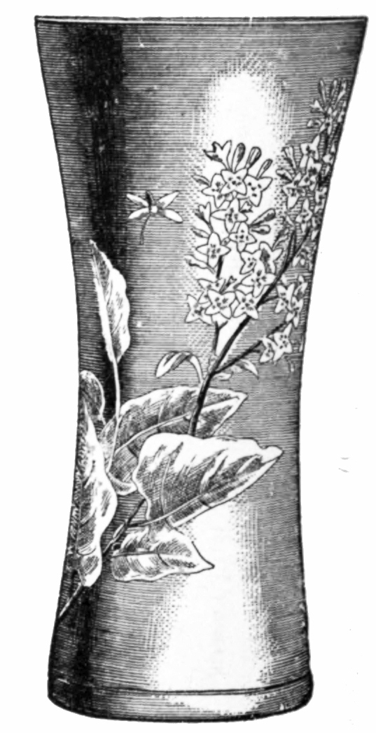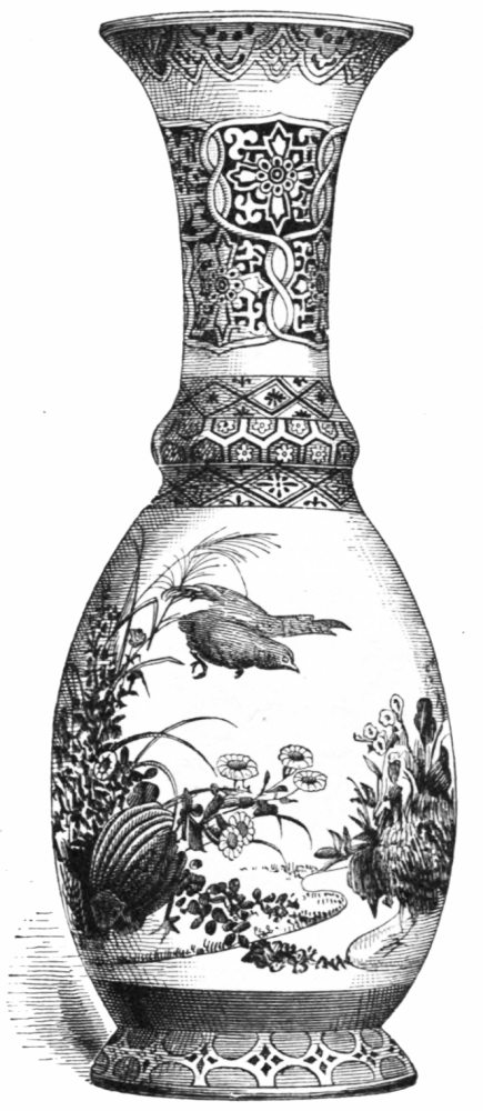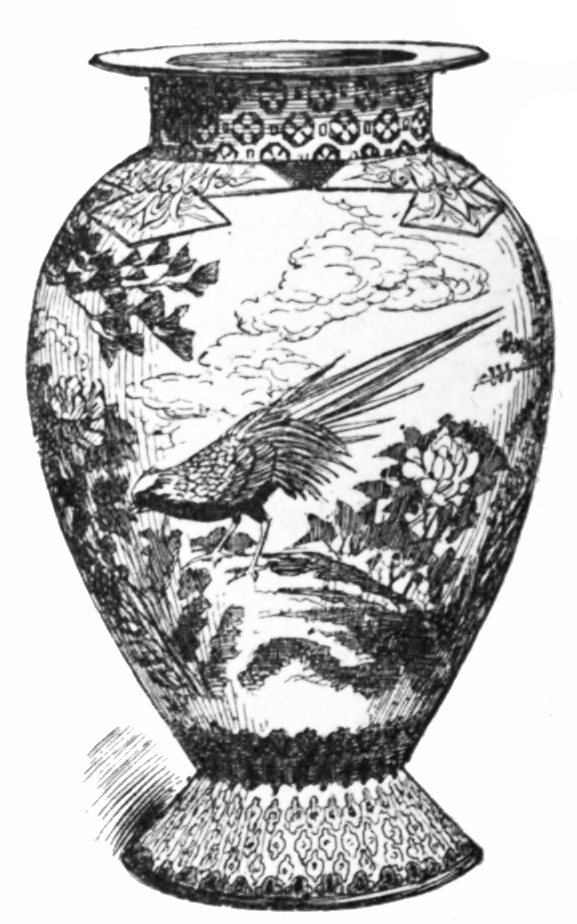 How to Study Japanese Art: Its Origin.—Its Revived Independence.—Nomino-Soukoune.—Shirozayemon.—Raku.—When Porcelain was First Made.—Shonsui.—Form of Government.—The Gods.—Symbols.—“Land of Great Peace.”—Foreign Relations.—General Features of Art.—Chinese and Japanese Porcelains.—Pottery: Geographical Distribution.{8}—Classification.—Satsuma.—Difficult Ware.—Saki Cups.—Imitations of Satsuma.—Kioto.—Awata.—Awadji.—Banko.—Kiusiu.—Karatsu.—Suma.—Porcelain: Leading Differences between Japanese and Chinese.—Sometsuki Blue.—Ware for Export.—Gosai, or Nishikide.—Arita, or Hizen.—Families.—Decoration.—Modern Hizen.—Seidji.—Kioto.—Eraku.—Kaga.—Portraiture.—Owari.—Lacquer.—Cloisonné.—Rose Family.—Early Styles: Indian: Dutch Designs.—General Characteristics of Japanese Art |
