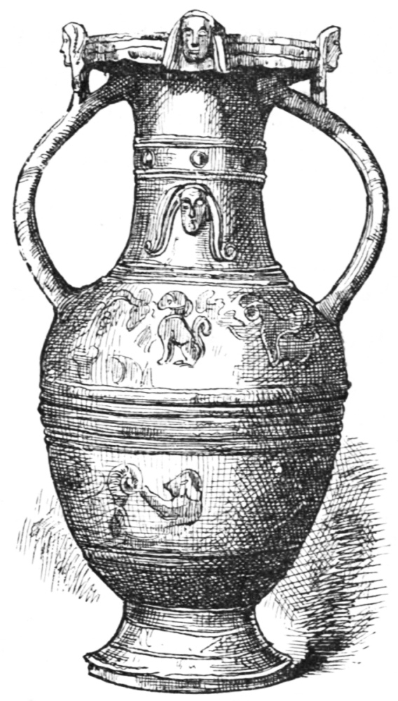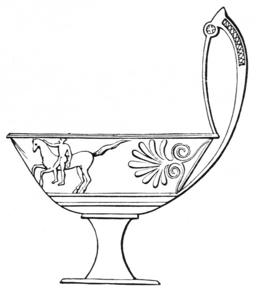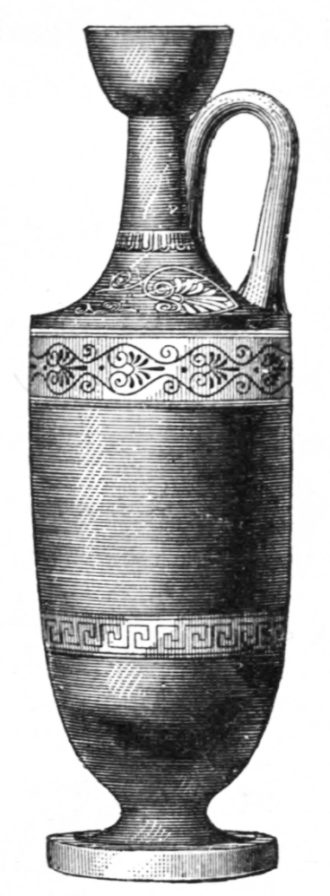 General Character of Greek Ceramics.—Form and Color.—Borrowed from Egypt and Phœnicia.—How Original.—Unbaked Clay: Bricks and Statues.—Terra-cotta: Where Used.—Tiles.—Models.—Vessels.—Pithos.—Amphora.—Pigments used on Terra-cotta.—Rhyton.—Glazed Wares: Quality of Glaze.—Paste.—Enumeration and Description of Vessels.—Uses of Vases.—Chronological Arrangement.—Methods of Making Vessels.—Successive Styles of Ornamentation.—Figures.—Earliest Style.—Archaic Style.—Human Figures.—“Old Style.”—Approach to Best Art.—“Fine Style.”—“Florid Style.”—Decline.—Classification according to Subjects Represented on Vases.—Reliefs and Statuettes as Decoration{9} |