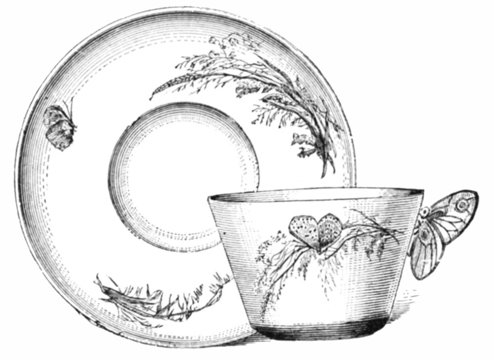Prospect on approaching France.—Present and Past.—The Ancient Celts.—Under the Romans.—Middle Ages.—Poitou, Beauvais, and Hesdin.—Italian Influence.—A National Art.—Bernard Palissy, Barbizet, Pull, and Avisseau.—Henri Deux Ware.—Rouen.—Nevers.—Moustiers.—Marseilles.—Strasburg.—Limoges.—Haviland’s New Process.—Examples.—Bourg-la-Reine.—Laurin.—Deck.—Colinot.—Creil.—Montereau.—Longwy.—Parville.—Gien.—Sarreguemines.—Niederviller.—Luneville.—Nancy.—St. Clement.—St. Amand.—Paris.—Sceaux.—Porcelain: Efforts to Make Porcelain.—First Artificial Porcelain.—St. Cloud.—Lille.—Paris.—Chantilly.—Mennecy.—Vincennes.—Sèvres.—Natural, or Hard, Porcelain.—Discovery of Kaolin.—Various Factories.—Limoges.—Deck.—Regnault.—Solon.—Pate Changeante.—Pate-sur-Pate |