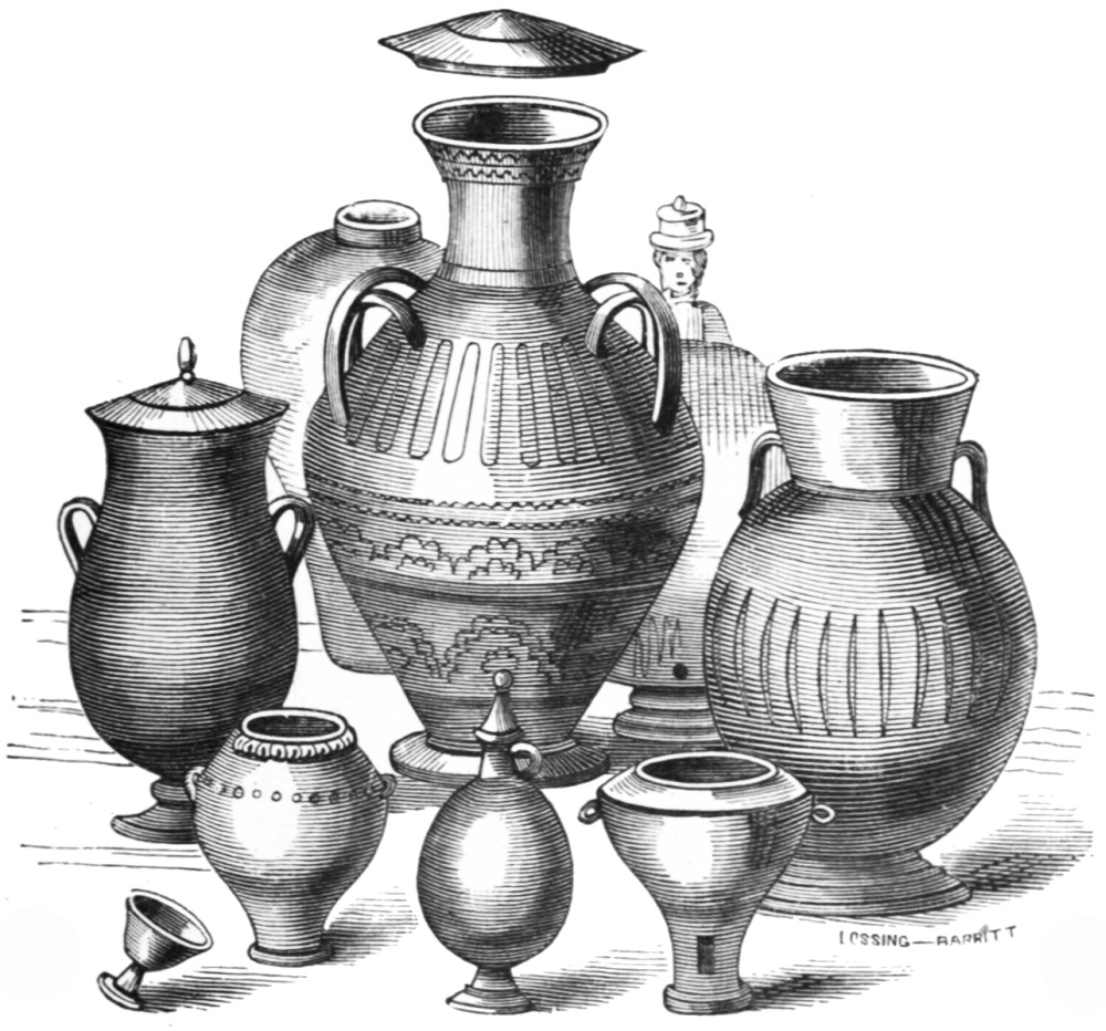 Advantages of the Study.—The Lost Origin of the Art.—Ascribed to the Gods.—Legends of China, Japan, Egypt, and Greece.—Keramos.—A Solution suggested.—How Pottery illustrates History.—How it explains the Customs of the Ancients.—Its Bearings upon Religion.—Examples from Egypt, Greece, and China.—The Art represented in Pottery.—Its Permanency.—As a Combination of Form with Drawing and Color.—Greek Art.—Its Merits and Defects.—The Orientals, and their Attention to Color.—Eastern Skill.—The Aim of Palissy.—The Highest Aim of the Ceramic Artist.—Painting on Porcelain.—Rules to be Observed in Decorating.—Where Color alone is a Worthy Object.—How the Art affords the Best Illustration of the Useful combined with the Beautiful.—Its Place in the Household | Page 19 |