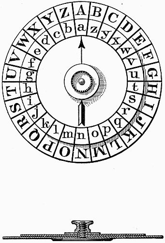 Let the distance thus found be 20 yards and the thickness of the lines and intervals between them one-tenth inch. The circumference of a circle with a radius[117] of 20 yards or 7,200 tenths inches is 14,400 by 3.1416 or 45,240 tenth inches; but a circumference equals 360° or (360 by 60 by 60) 1,296,000′′.