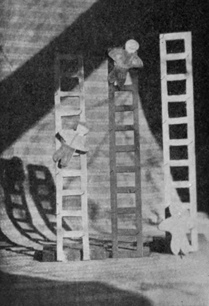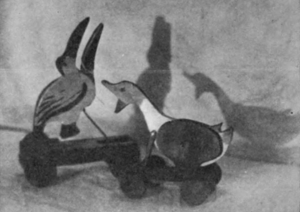 Toy-making incorporates this method, with several vital elements added. It takes into account the child's view-point, his proclivities and his emotions. It is a form of activity that appeals strongly to his fancy, has a direct relation to his environments, and is within the range of his mental grasp and constructive ability. His wonderful imagination endows the creatures of his handiwork with life, individuality and cunning. The toy problem is in harmony with the child's resourcefulness, his powers and his interests.