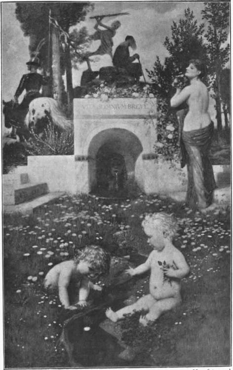 Fortuny’s influence on the Italians, especially on the school of Naples.—Domenico Morelli and his followers: F. P. Michetti, Edoardo Dalbono, Alceste Campriani, Giacomo di Chirico, Rubens Santoro, Edoardo Toffano, Giuseppe de Nigris.—Prominence of the costume picture.—Venice: Favretto, Lonza.—Florence: Andreotti, Conti, Gelli, Vinea.—The peculiar position of Segantini.—Otherwise anecdotic painting still preponderates.—Chierici, Rotta, Vannuttelli, Monteverde, Tito.—Reasons why the further development of modern art was generally completed not so much on Latin as on Germanic soil | 326 |