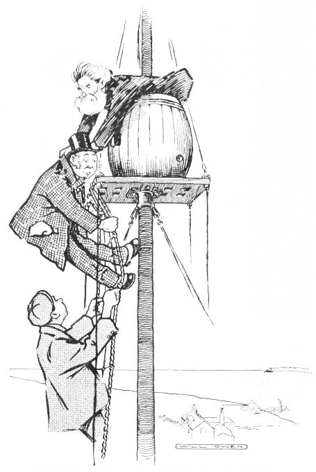 "At first sight my photograph seems to be that of an immensely tall man, but in reality the legs of the giant belong to somebody else, while the top half is standing on a barrel."—Mr. H. S. Nicolson, Brough Lodge, Fetlar, Shetland.