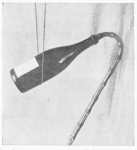 "I was cutting the corner off a gammon of bacon when I discovered I had sawn through a piece of glass which was lying quite close to and parallel with the thigh-bone, and had I known of its presence I could have taken it out whole. It measures, when put together, six and a quarter inches. How it got into this position is a mystery, as there was no indication of its progress anywhere and the meat was perfectly healthy and in no way discoloured. Whether the poor pig swallowed it or sat on it I leave for your readers to conjecture. Photo, by W. B. Gardner, Farnborough."—Mr. W. J. Buck, Cove Road, Farnborough, Hants.