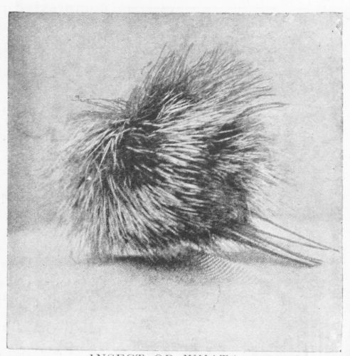 "I send you the photograph of an extraordinarily curious insect: I am not prepared to say whether it is an insect or some kind of organism. I can only say that it is alive and lives on red lead. The lady in whose possession it is has had it for upwards of eighteen years, and who knows how many years of life it had before? It is covered with light brown hair (which has to be cut occasionally), very like deer's hair, and is the size of a large marble. The 'curious insect' was given to the lady's husband by a rich native who gave up all his worldly possessions and became a fakir. When giving it to the gentleman (who had shown the man some kindness) he said that it would always bring him good luck."—Mr. T. G. A. Baness, Hall Bazaar, Amritsur, Punjab.