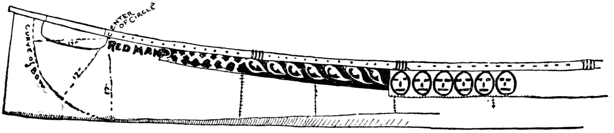 Next select a level piece of ground near by and arrange the three pieces upon some supports, as shown in Fig. 219, so that from outside to outside of side-pieces it will measure just 8 feet across the bow and stern. Of 1-inch board