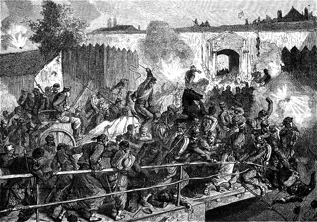 LES FUYARDS A LA PORTE DE BALAN. Gravure extraite de la