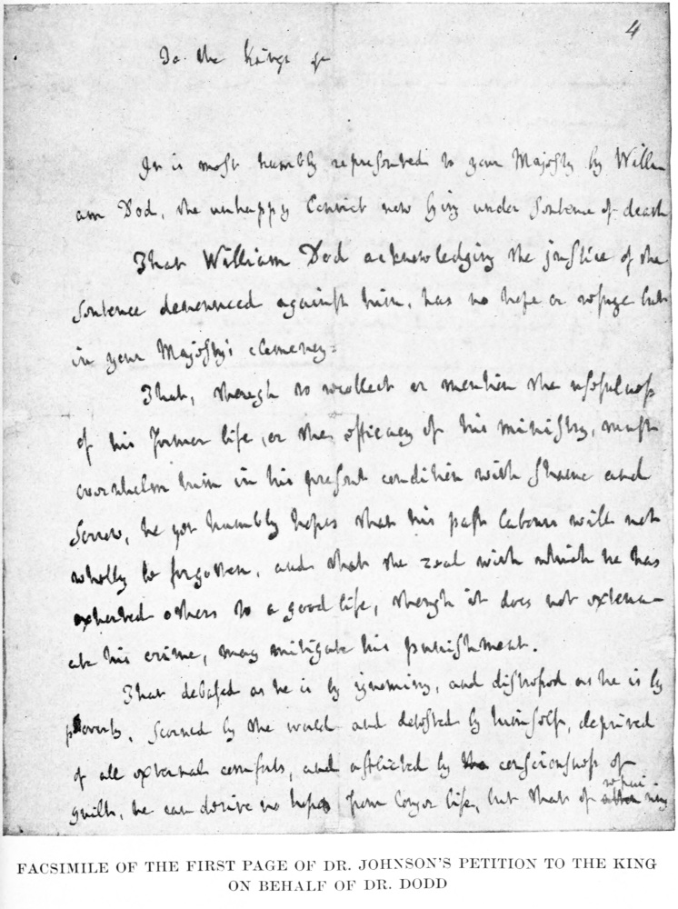 [11] The original of the portrait opposite was owned by Boswell, who used the engraving as the frontispiece of his “Life of Johnson.” Now in the Johnson collection of Robert B. Adam, Esq., of Buffalo. There is a proof plate with an inscription in Boswell’s hand: “This is the first impression of the Plate after Mr. Heath the engraver thought it was finished. He went with me to Sir Joshua Reynolds who suggested that the countenance was too young and not thoughtful enough. Mr. Heath thereupon altered it so much to its advantage that Sir Joshua was quite satisfied and Heath then saw such a difference that he said he would not for a hundred pounds have had it remain as it was.”