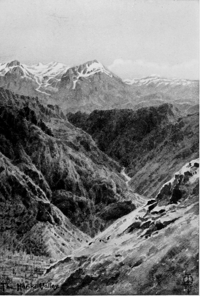 [130] This advice applies even more forcibly to travellers in the remoter villages. There almost the only food obtainable is the local pancake bread. The sole delicacies are “butter (i.e. curds) and honey,” as they were in the days of Isaiah. Eggs may be got occasionally; but the pampered European who lusts for flesh meat had better bring it with him in tins. Life is too hard in the mountains to yield more than the barest necessaries; and the slaughter of a sheep for a banquet is a very exceptional extravagance indeed.