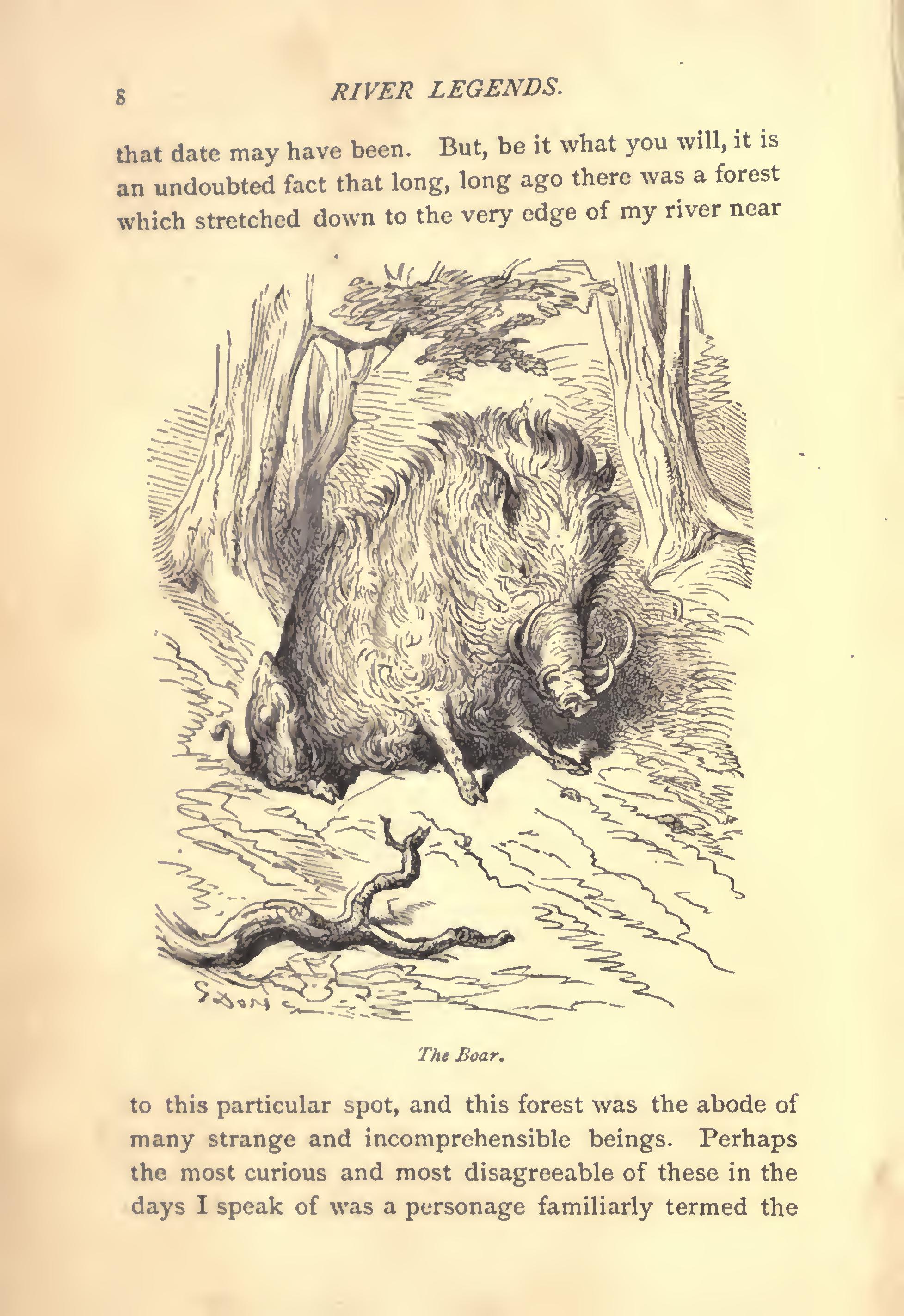 All this time the Boar continued to pursue his ravages unchecked and unmolested, and had become more than ever the terror of the surrounding country. In vain did the Druids denounce him: the more they cursed the more he seemed to prosper, and the whole framework of society was shaken by this terrible animal, The effect, moreover, 019throughout the whole island, was the reverse of agreeable.