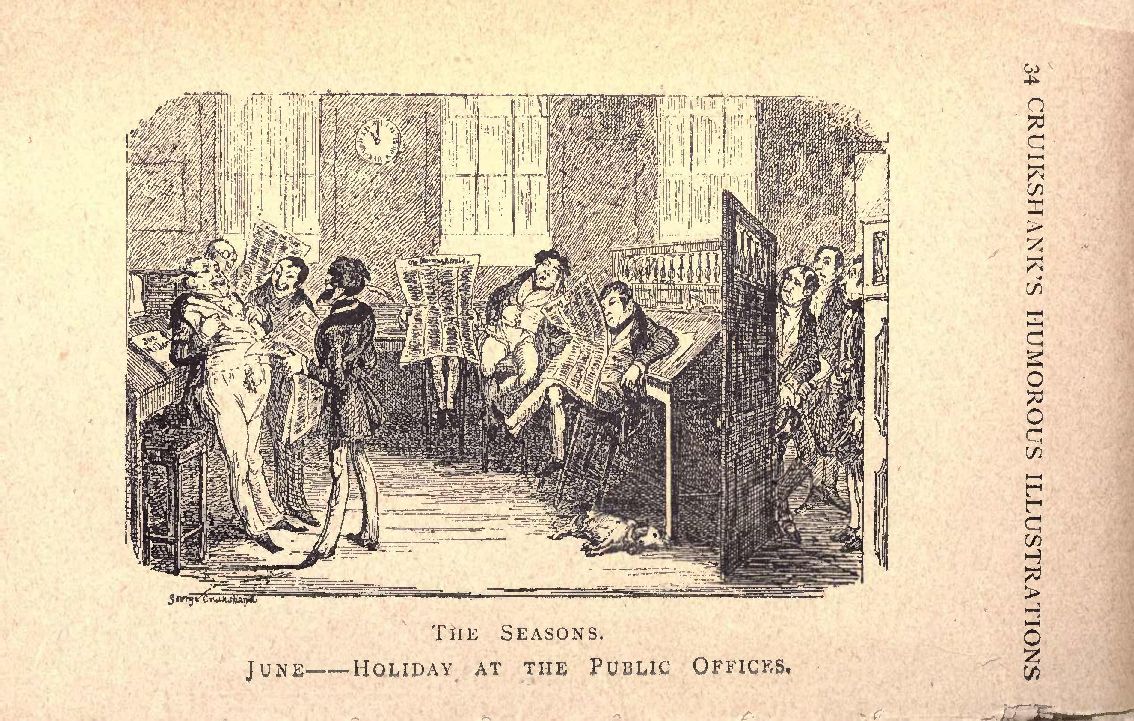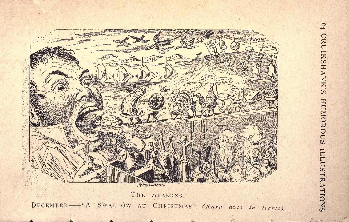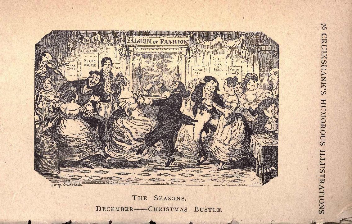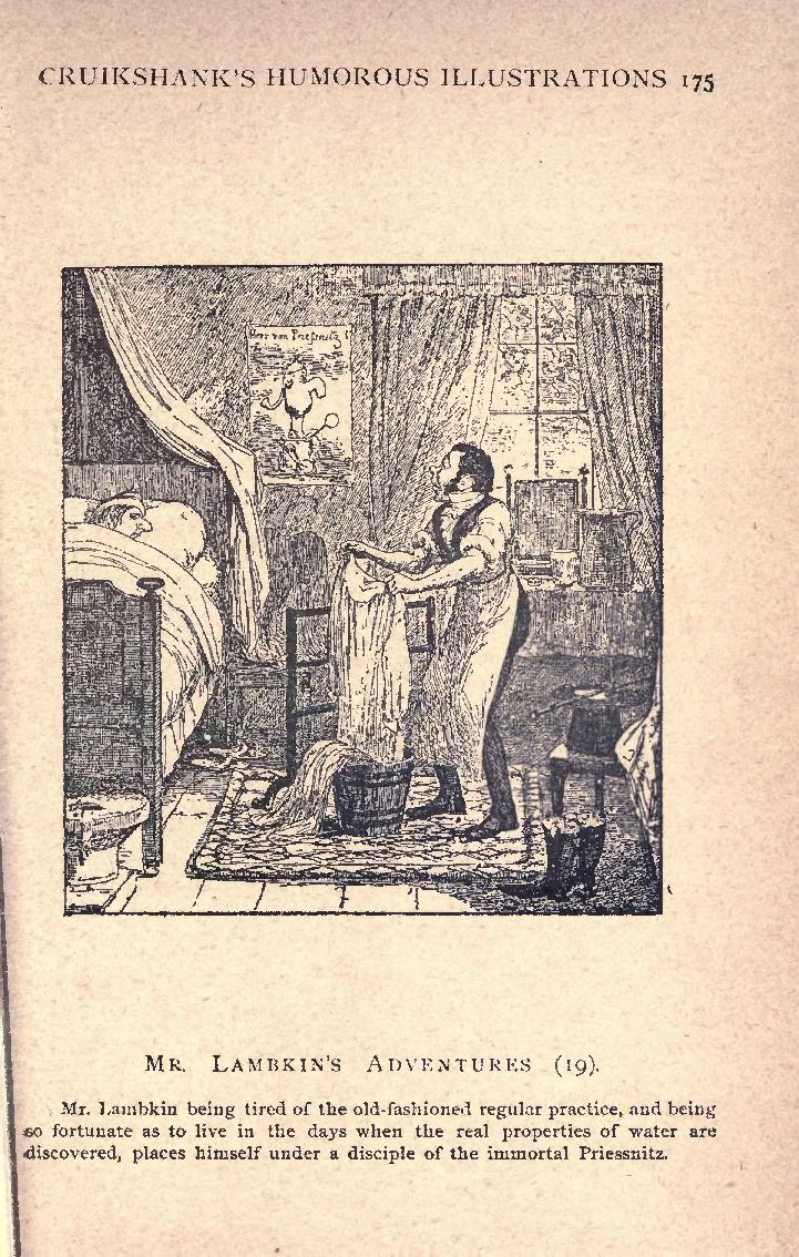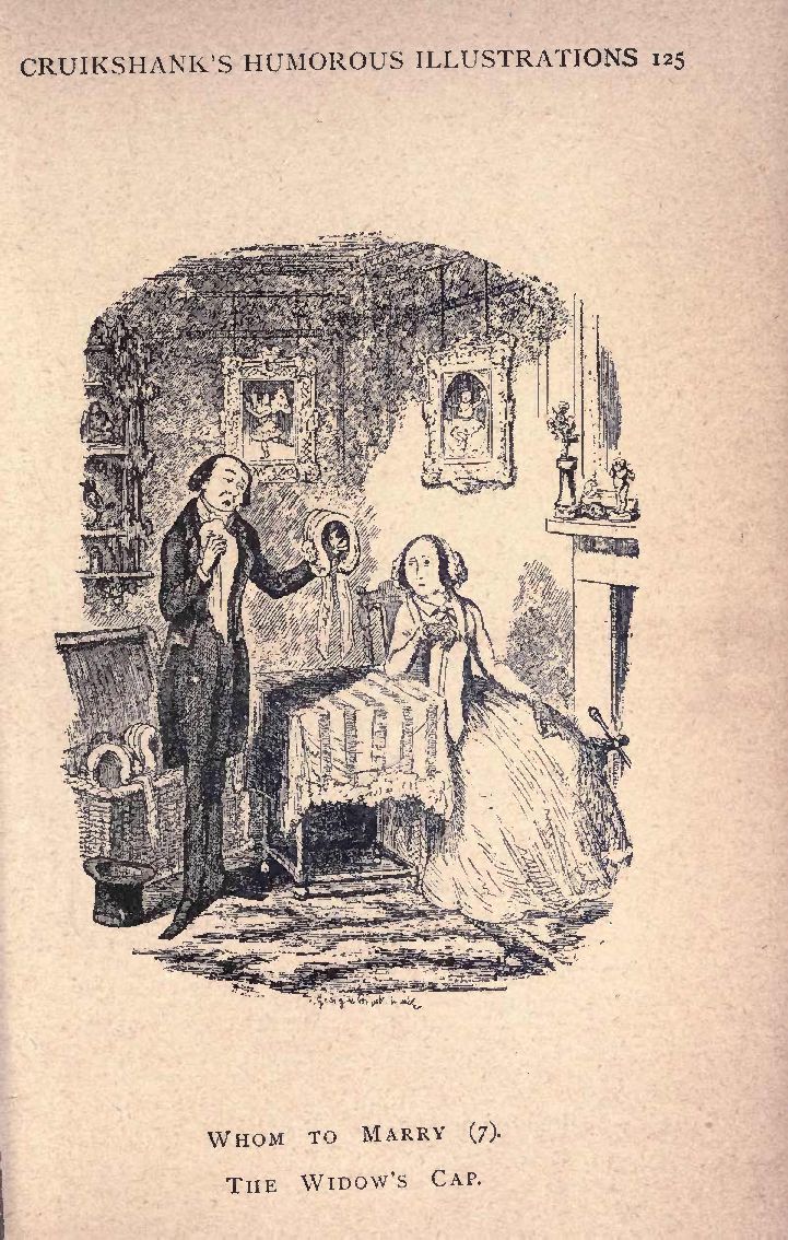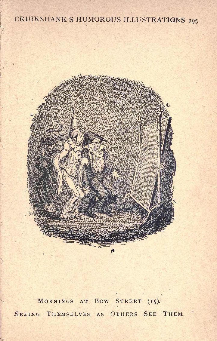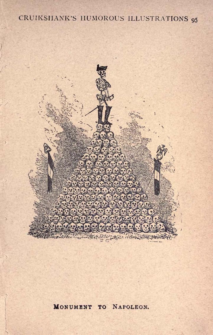 In course of time the artist was firmly established in business, and had numerous patrons among the publishers, some of whom were thriving to a considerable extent through Cruikshank's labours. After numerous isolated sketches, which brought him no small amount of fame, the first considerable series of designs by him appeared in Dr. Syntax's Life of Napoleon, consisting of thirty illustrations. Another long series was twenty-three illustrations to Pierce Egan's Life in London. As also twenty-seven etchings to Grimm's Popular Stories. These were followed by numerous other lengthened series, such as Mornings at Row Street, Three Courses and a Dessert, Punch and Judy, Gil Blas, My Sketch Book, Scott's Novels, Sketches by Boz, The Omnibus, and very numerous others. In all, he appears to have produced the illustrations for no fewer than three hundred and twenty volumes, not to speak of an immense number of isolated sketches of all sorts.