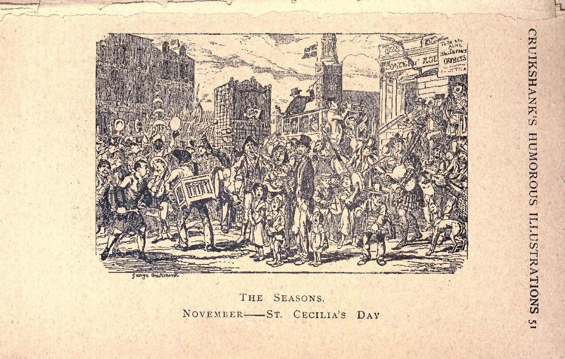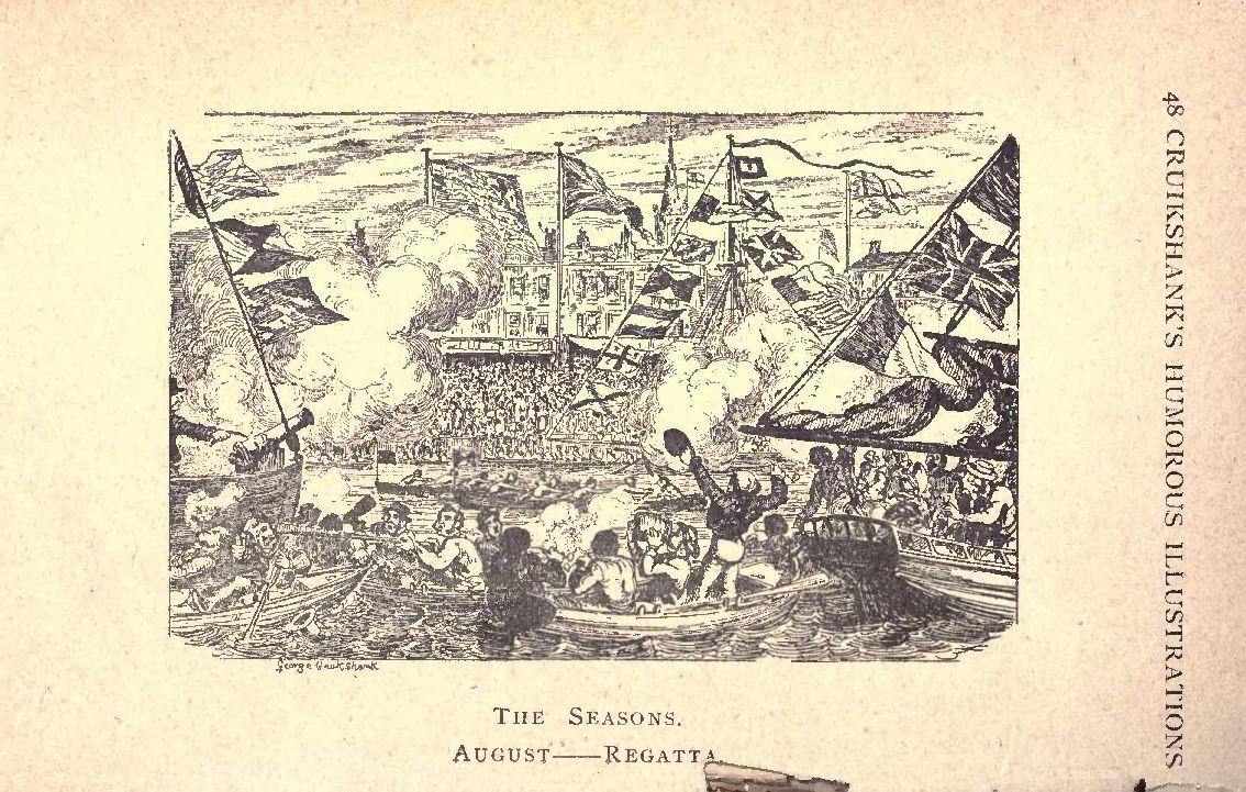 While the three children were still quite young, the family removed to No. 117 Dorset Street, Salisbury Square, Fleet Street, where the parents let a portion of the house to lodgers. Here the father continued to work on his plates, while his wife coloured them by hand, soon, however, obtaining help in that respect from her sons. The boys went to school at Mortlake, and afterwards to Edgeware, but not for long, so that they owed little to school masters. The elder brother went to sea, and not returning when expected, was supposed to be lost, and mourned for as such. But after three years he suddenly re-appeared, and was welcomed home with joy,—resuming engraving for a livelihood Unfortunately for the family, the father died in 1811 Up to the time of his decease he appears to have had a steady and good business, having produced an immense number of sketches, coloured etchings, engravings, and designs produced in various modes, many of them in connection with the stage. At the time of his father's decease, the oldest son was twenty-two years of age, and George, the second son, nineteen. They were both well-advanced in their profession, and were quite capable of taking up and prosecuting their father's business connection.
