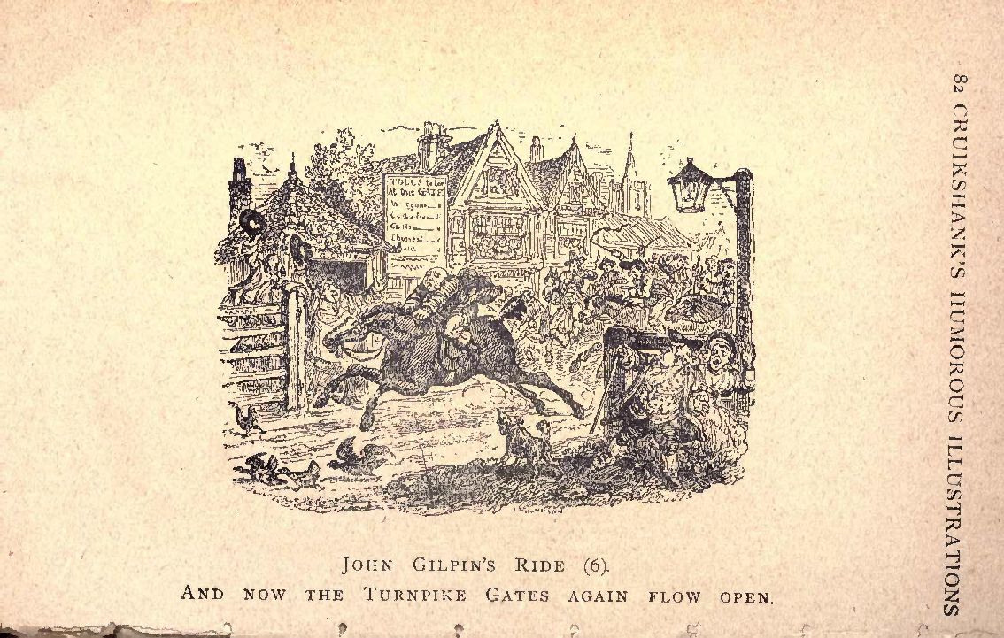 Previous to all this, there is no doubt that George began to draw when he was a mere child. Some of his productions of 1799 are still extant. "George's first playthings," says Mr. Bates "were the needle and the dabber;" but play insensibly merged into work, as he began to assist his hard-worked father. His earliest inclination, it is said, was to go to sea, but his mother opposed this. The earliest job in the way of etching, for which he was employed and received payment, was a child's lottery ticket. This was in 1804, when he was about twelve years of age. in 1805 he made a sketch of Nelson's funeral car, and whimsical etchings of the fashions of the day. His earliest signed work is dated two years later, and represents the demagogue Cobbett going to St. James's. His father's early death threw the lad on his own resources, and he quickly found that he must fight for a place in the world, as Fuseli told him he would have to do for a seat in the Academy. Anything that offered was acceptable—headings for songs and halfpenny ballads, illustrations for chap books, designs for nursery tales, sheets of prints for children—a dozen on the sheet and a penny the lot—vignettes for lottery tickets, rude cuts for broadsides, political squibs—all trivial records but now of the utmost rarity and value.