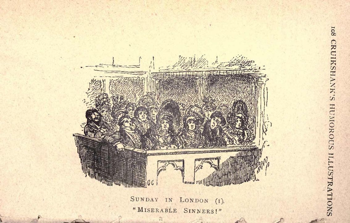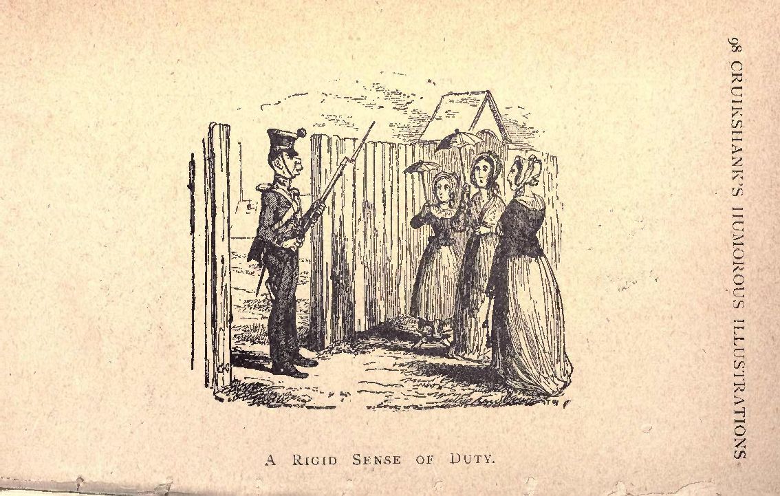 In person Cruikshank was a broad-chested man, rather below the middle height, with a high forehead, blue-grey eyes, a hook nose, and a pair of strong whiskers. In his younger days he had been an adept at boxing and all manly sports, as also an enthusiastic volunteer, ultimately becoming lieutenant-colonel of the 48th Middlesex Volunteers. He preserved his energy almost to the last day of his life. Even at eighty he was ready to dance a hornpipe, or sing a song, "he was," says one who knew him well, "a light hearted, merry, jolly old gentleman, full physically of humorous action and impulsive gesture, but in every word and deed a God-fearing, queen-honouring, truth-loving, honest man."