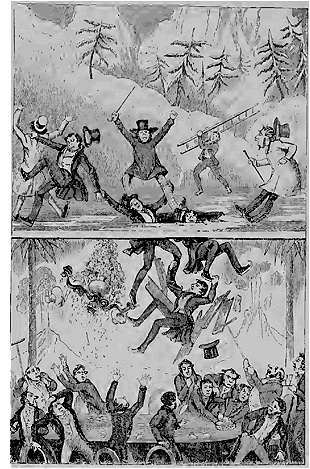 Mais voici le plus beau; voyez cette chambre dont la tapisserie représente pour le moins un paysage des côtes de la mer Glaciale: c'est une école de patin fondée au troisième étage sur un parquet parfaitement ciré, mais mal établi sur ses solives. Vous voyez ce qui en arrive; le plancher crève, et qui est à plaindre? Les patineurs? Non; les locataires du deuxième étage. Heureusement, ce deuxième étage est occupé par un tripot, et le patin qui tombe d'en haut va venger sur le front des joueurs la loi qui interdit la roulette et le trente et quatre.