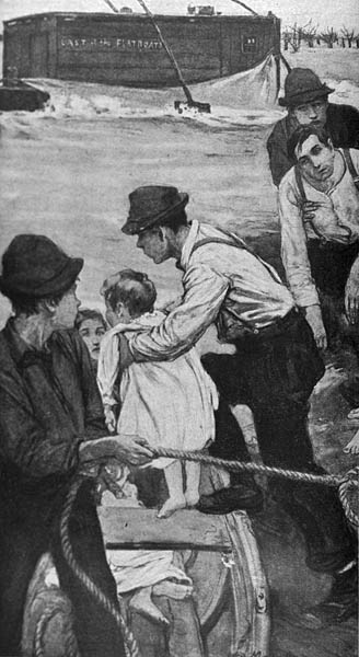 It took about nine days for the pottering old freight steamer to make the journey to Louisville; for although the great flood had considerably subsided, the Ohio was still sufficiently full for the boat to pass over the falls and land her cargo at the city, instead of discharging it at Portland, four miles below.