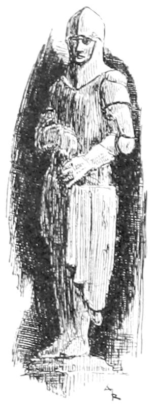 trente pieds, colosse casqué, bardé de fer, qui se promène, bouclier au