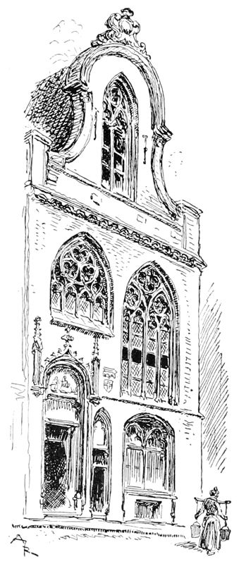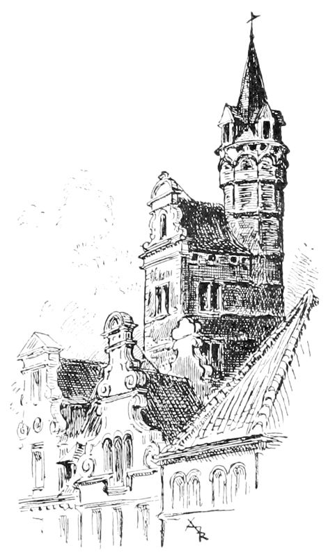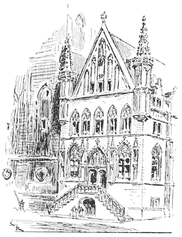 L'aspect de la ville est gai et avenant; certes ses rues sont bien modernisées, ce qui veut trop souvent dire banalisées, mais enfin, de loin en loin, au milieu des maisons quelconques, bourgeoisement banales ou de petit aspect boutiquier, on aperçoit encore bien des façades à la mode du dix-huitième siècle, de jolis détails de style rococo, tout à l'honneur du goût de la bourgeoisie ou de la magistrature d'alors. Et puis il y a l'Hôtel de ville, le superbe Hôtel de ville gothique qui peut aller de pair avec les plus célèbres édifices communaux de Belgique. Cet Hôtel de ville est admirable, on est bien forcé, par l'étroitesse de la rue qui passe devant la façade principale de lever très fort la tête pour détailler les beautés de cette façade, mais enfin on y parvient et l'on ne perd rien des belles fenêtres, des deux entrées à triple porte, des pinacles et des ogives dont les crochets et les fleurons s'épanouissent largement.