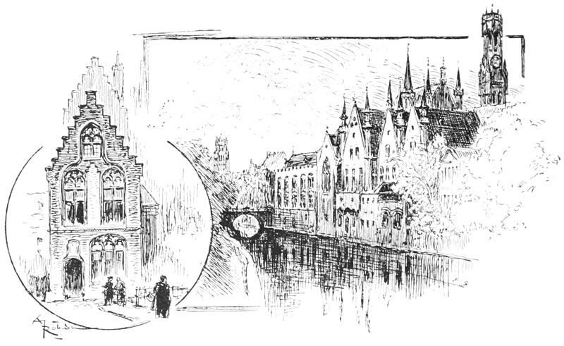 L'art s'y épanouissait, autrement peut-être qu'en Italie, mais tout autant, art moins fastueux, plus concentré, plus profondément senti dans la brumeuse atmosphère. Et sous un ciel humide et voilé, l'art créait les joies nécessaires que le soleil se refuse à dispenser aussi généreusement que là-bas, l'art ciselait les monuments, fleurissait toutes leurs lignes du haut en bas, taillait et fouillait leurs sculptures, découpait diversement tous les pignons des logis bourgeois, effilait vers les premiers nuages toutes ces flèches, du haut desquelles les carillons, pour égayer et faire chanter le ciel, lançaient d'heure en heure les chansons des cloches.