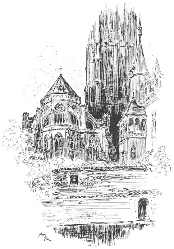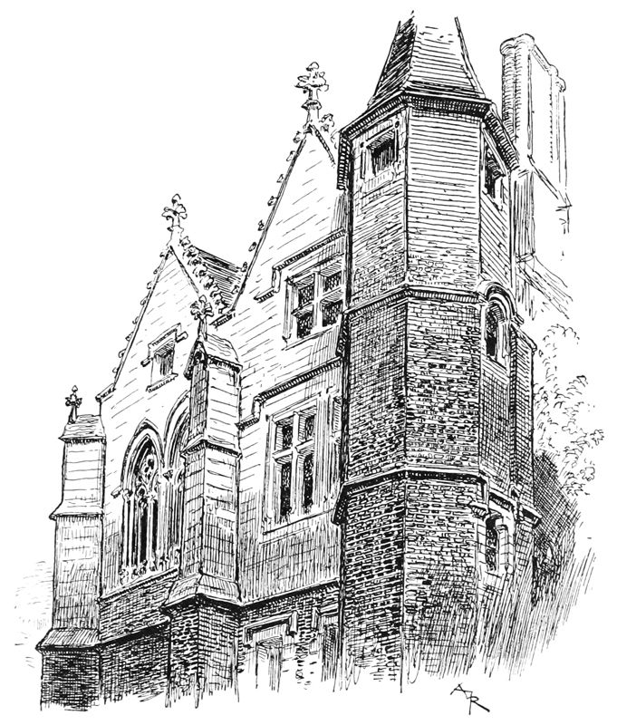 Dans le faubourg de Paris, presque aux champs, il est encore une petite maison fort jolie, plus jeune que celle-ci d'un bon siècle: le pignon a trois étages de volutes avec des mascarons grassement sculptés, et une tourelle carrée s'élève en arrière. C'est le type de ces maisons qu'on s'obstine à appeler maisons espagnoles un peu partout dans le Nord. Il est superflu de dire qu'elles n'ont absolument rien d'espagnol et ne ressemblent aucunement aux architectures d'au delà des Pyrénées, seulement elles sont du temps de l'occupation espagnole. De même, en d'autres provinces, en Normandie, en Picardie ou ailleurs, on entend dire de telles églises, ou de tels clochers du quinzième siècle, que ce sont ouvrages des Anglais; les Anglais, pas plus que les Espagnols, n'ont rien bâti en France, où d'ailleurs ils avaient bien d'autres choses à faire et bien d'autres préoccupations.