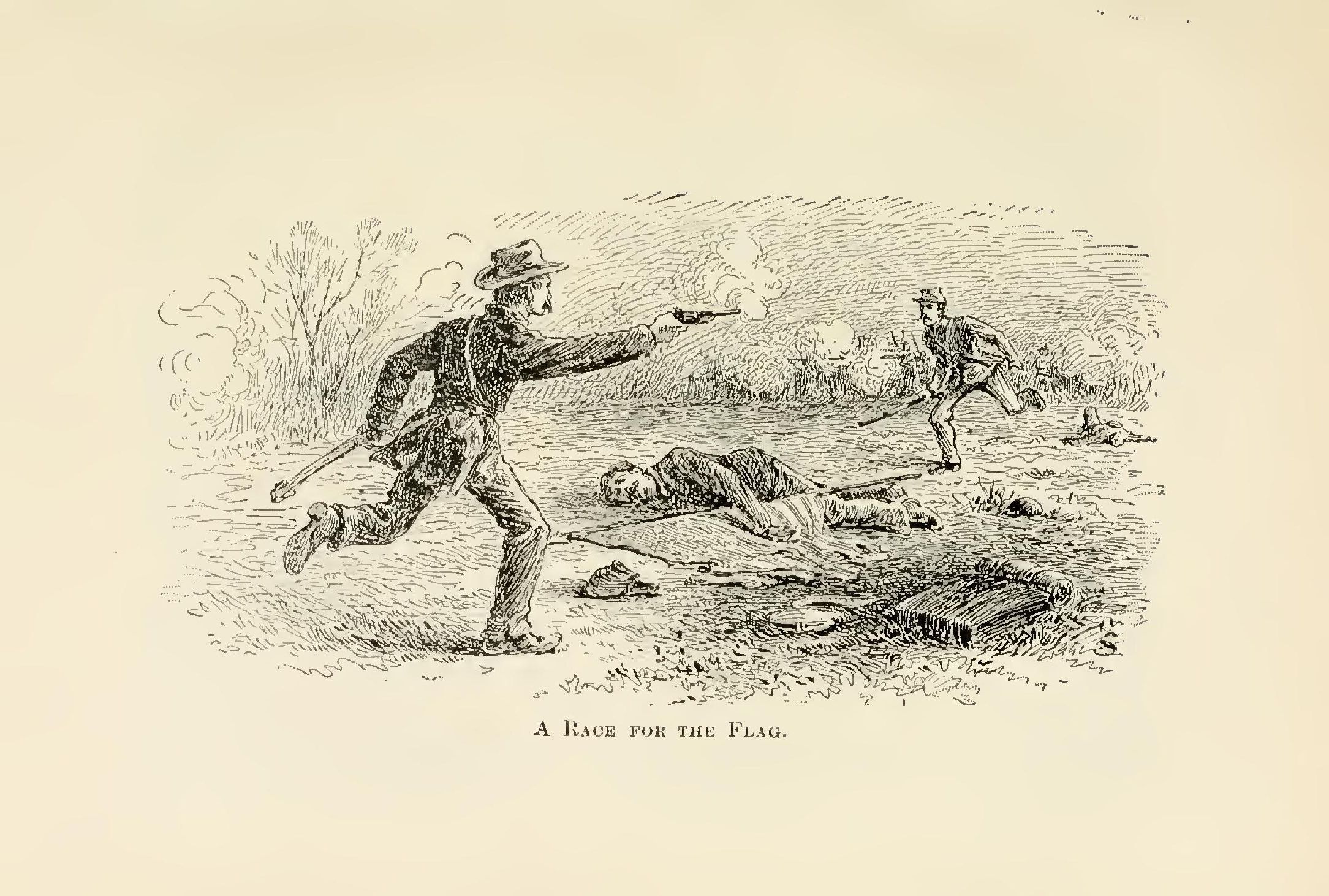 After the fighting was over the youths dismounted to look over the ground and pick up anything that might be of value or would indicate to what company or regiment, if any, the men they had been engaged with belonged. They had done this on several occasions to advantage, and in the latter part of their campaigning it was a rule to which they adhered whenever circumstances permitted.