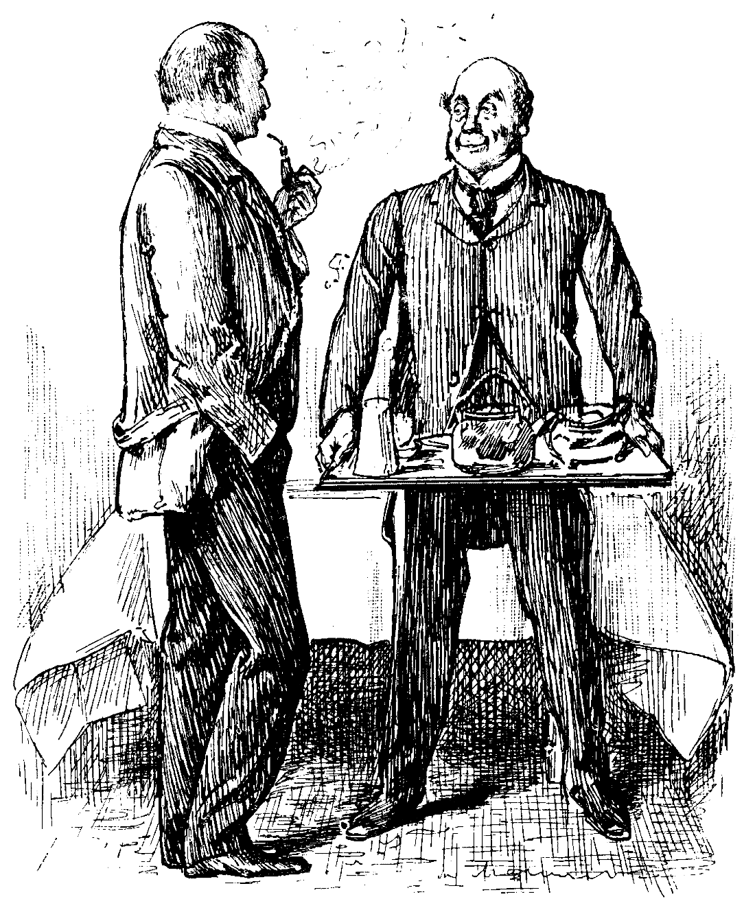 Strange Omen.—Sir Frank Lockwood, Solicitor-General, was "entertained," says the Daily Telegraph, "to dinner"—(observe, not "entertained at dinner"; perhaps he had to do the entertaining, then)—"at the House of Commons, his host, Mr. John Aird" (always a host in himself), "being a Conservative," while the other guests were either Conservatives or Unionists. Daniel in the lions' den is the parallel that arises to everyone's mind; but in this instance Daniel actually dined with the lions, and probably felt none the worse for the "feast of reason and the flow of soul."