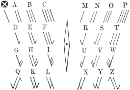 6 Primary signals are those in which the letter indicated is represented by a single deflection of the needles in either direction. A single needle telegraph can have only two primary signals, one to the right and one to the left; all the other letters being indicated by repeated deflections. In several instances four deflections are required to signal a single letter.