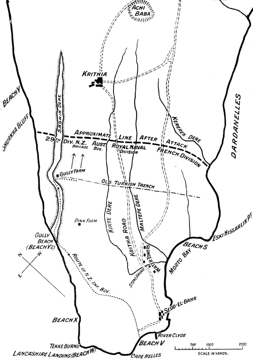 | 6/7. | British delivered holding attack at Cape Helles. | |