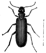 If we take up a beetle, and look for its wings, for the first time, we shall probably fail in detecting them, that is, of course, if the insect has not been observed in the act of flying. On examining the body we see, indeed, a pair of shining horny plates on its back; but surely these are not wings? Presently, the insect having mounted to the top of our finger, prepares for flight; its two hard cases fly up, and, behold! from beneath them appears a pair of the most beautiful gauze-like wings, [381] which it quickly unfolds, puts into motion, and then flies away. The two thick and horny covers for these delicate organs are called elytra, or "wing-cases." They are really the first pair of wings, much thickened; and their use is to protect the delicate membranous wings of the hinder pair, beneath them. When the insect flies, they open like a box-lid, and are carried out of the way of the other wings; when the insect rests it carefully folds up its other wings, and then these close over them, and preserve them from all injury. As the insects in which they are found frequent places of danger, burrow underground, or take up their abode under stones, it is manifest how admirable a contrivance this is for such purposes, and how efficiently the fragile wings will be covered and protected by such shields. The first pair of wings is sometimes thickened to the consistence of parchment as a cover to the other wings; and they are then called tegmina, or "wing-covers."