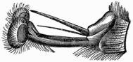 What is the use of the antennæ, resembling as they do, feathers, saws, clubs, &c.? Everything indicates that these organs play a very important part in the life of insects, but their functions are imperfectly understood. Experience has shown that they only play a subordinate part as feelers, and have nothing to do with the senses of taste or smell. There is no other function for them to fulfil, except that of hearing.