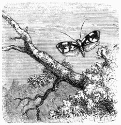 [69] In England it numbers about three hundred species. The larvæ are of diverse habits, but the majority feed on low plants; the moths are provided with a trunk, and are very partial to sweets.—Ed.